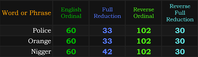 And don't overlook the overlap between 'police', 'orange' and the n-word.
